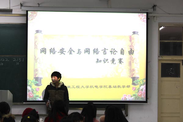 为了使同学们了解网络言论的相关知识和提高同学们的网络安全意识,基础教学部于12月3日中午12:30在西三202教室举办了“网络言论及网络安全知识竞赛”,参加本次活动的有基础部辅导员潘诚老师、系部学生会全体成员以及基础部的2012、2013级同学们。