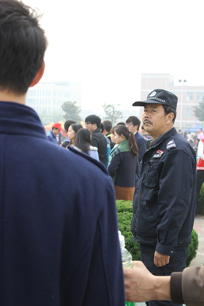 当我们关注赛况,感慨裁判员、志愿者的辛苦时,还有一群人正竭力为这次运动会的顺利进行保驾护航——安保人员。据安保处一位工作人员介绍,由于运动会期间人流量大,学校加强了安保力度,巡逻次数和巡逻人数都显著增加,以保障老师学生的安全。看着身着黑色制服不断巡逻的他们,一种荣辱与共的使命感油然而生,让我们向那些默默奉献的工作人员致以深深的敬意。