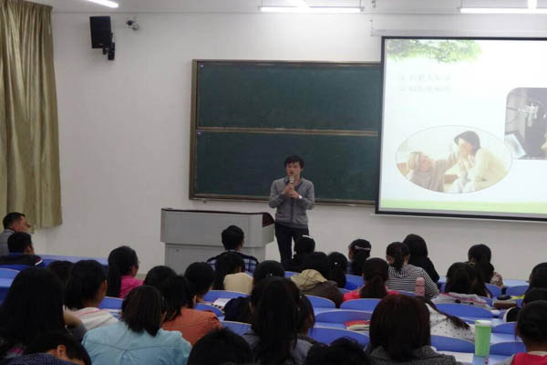 讲座始终围绕大学生心理健康这个主题展开,分为大学生心理适应与情结管理两个模块。潘诚首先指出,对于初入大学的新生来说,三个月的心理适应期能否顺利度过,将直接影响到大家今后的生活和学习,而情绪的管理更加不可忽视,一次的失控也许就把你亲密无间的挚友推向“陌路”;潘老师运用PPT上精选的那一个个发生在同学们身边的真实案例,对情绪失控的后果做了有力的证明。随后,潘诚从专业的角度对上述案例进行了深度剖析,并针对大学生可能存在的心理问题提出了很多切实可行的合理建议,让在场的同学们受益匪浅。