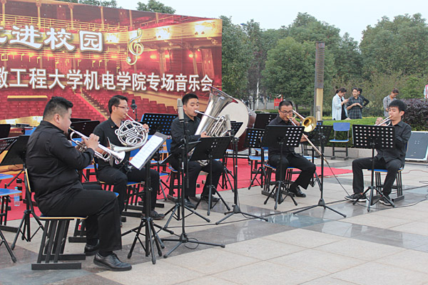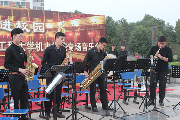 据悉,此次来我院的交管乐队成立于2013年夏天,成立时间虽短,但已有着丰富的演出经验,一年多来,他们带着音乐深入到芜湖各地,将交响乐这种艺术形式展现给更多的人。本次受邀出演也是希望机电学子能感受到交管乐的独特魅力,用音乐陶冶情操,在音乐中快乐学习。(孙森、孙丽萍/文 孙森/摄)