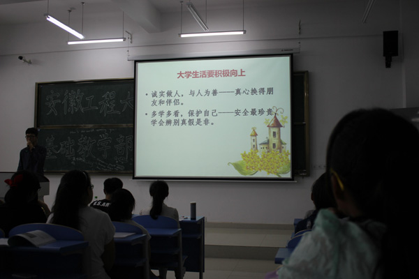 为了帮助2014级学生对于刚刚开始的大学生活有更全面的了解和更切实的感知,更快地适应大学生活,明确发展方向,基础部于9月29日下午在A1N106教室开展了“新老生交流会”,参加此次会议的有基础部学工秘书张爱兵、2012、2013级辅导员潘诚、2014级辅导员赵靓和14级全体学生,邀请了我部获得国家励志奖学金的学生代表和班级学生干部来给14级新生分享他们大学生活和学习的体会与经验。