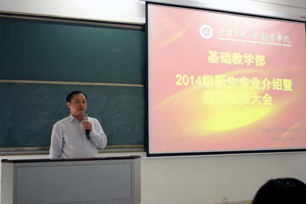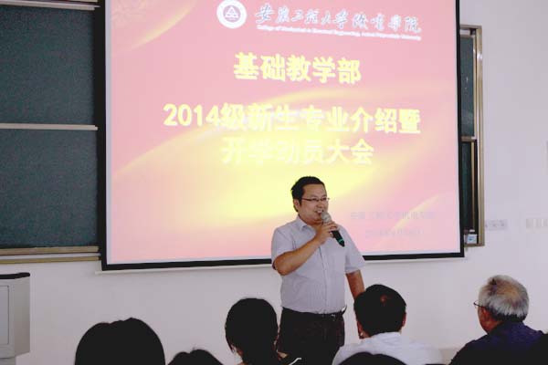 9月16日下午2点30分,基础教学部在新芜校区A1N106教室召开英语专业新生专业介绍会,就英语专业的人才培养计划和课程设置等问题,对刚入学的2014级全体新生上了丰富而又生动的一课。