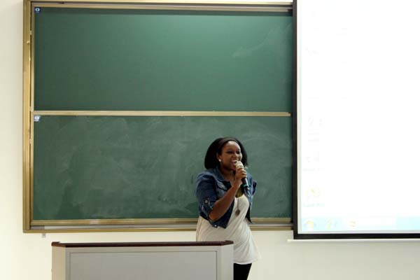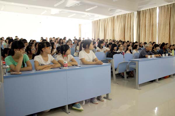 介绍会上,黄武勇首先对同学们的到来表示欢迎,同时表示会全力做好服务工作,对新生充满希望;吴振华教授从英语和中文的关系方面,为学生的英语学习提供方法上的指导;蔡玉辉主任围绕“大学是什么?”“英语专业如何学?”两个问题,从不同的高度进行剖析,回答了学生们大学里“学什么”和“怎么学”的疑问;最后,胡叶婷老师对英语专业人才培养方案进行详细解读,全面介绍人才培养目标与要求、课程设置与安排等信息,外教及全体英语专业老师与学生进行热烈的现场互动。同学们纷纷被领导、老师所讲的内容吸引,热情高涨,不时爆发出阵阵掌声。