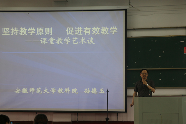 学院先后邀请了安徽省教育厅高教处处长储常连;安徽师范大学教育科学学院李宜江教授,物理与电子信息学院许新胜教授以及安徽师范大学教育科学学院教授,安徽省教育学会教育史研究会副理事长孙德玉教授给我院教师带来四场精彩万分的讲座。各位主讲教授通过深入浅出的演讲,言简意赅的言语,向与会的各位教师介绍了何为教育,何为教学,教学应包含的几个重要方面,以及年青教师在教学过程中容易出现的各种问题。