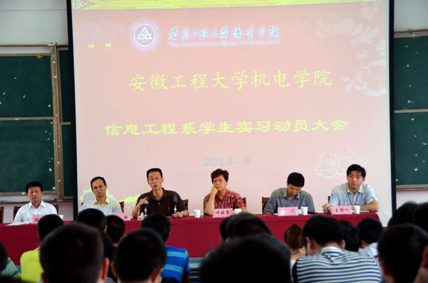 9月1日下午2点30分,我院信息工程系学生实习动员大会在西二503教室举行。院长吴敏,副院长许晓菁、陈跃东,信息工程系主任陈永煌,教务处老师张侃及该系全体教师参加了会议。会议由系秘书陈振主持。