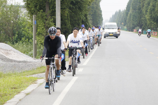 上午七点三十分,单车行健儿们在校大门集结待发。副院长许晓菁作了简短的动员讲话后,年轻的健儿们出发了。长途骑行的剧烈运动,大家的体力消耗都很大,但依然兴致勃勃,精神抖擞。发起者王国营等老师不仅积极参与其中,还一路鼓励、关照各位年轻的队员们,为他们加油呐喊。上午十点,车队顺利到达芜湖县城的东湖公园,稍事休息了一番,又来到了本次活动的终点——新芜校区。健儿们用实际行动诠释了本次公益活动的意义,沿途居民都用赞叹的目光为我们这支车队加油,