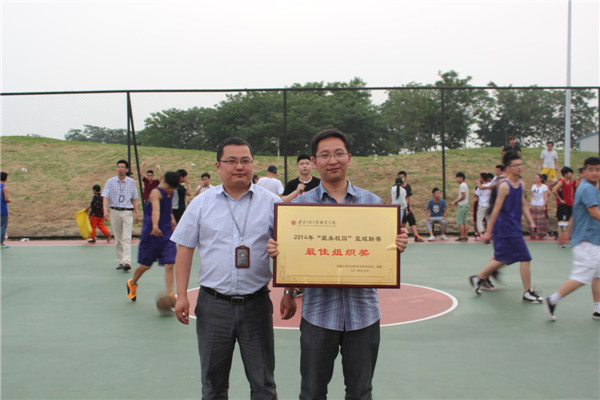 5月28日下午,由院团委主办、“力挽狂澜”篮球社承办的“最美校园”篮球赛在同学们的欢呼声中落下帷幕。学院副院长许晓菁、院长助理毛玉敏、学生处副处长黄武勇、学生处思想教育科科长谢贵勇、学生管理科科长孙惠玲、信息工程系学工秘书陈振、机械工程系学工秘书吴晓、基础教学部体育教研室主任陈琳及辅导员代表等观看了决赛并参加了闭幕式,为获奖队伍及最佳球员颁奖。