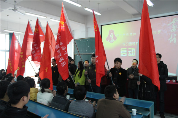 仪式在庄严的国歌声中拉开了帷幕。谢贵勇首先宣读我院本次雷锋月学习雷锋活动的具体规划,并介绍了上学年雷锋月系列活动的实施情况及活动经验。随后,学生代表沈洋向全体青年学生发出了学习雷锋精神的倡议。志愿服务队队长高波代表志愿者宣誓,之后,志愿服务队学生代表接受学院领导的授旗。