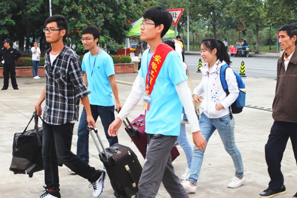 除了学院报到的主战场,火车站、汽车站作为新生到校的第一站,志愿者们岂能让它无人守候。“这几天,学院专门派出大巴车往返火车站、汽车站接送新生。每辆大巴车都有漂亮学姐、帅气学长们护航哦”,一位志愿者面对记者如是说。