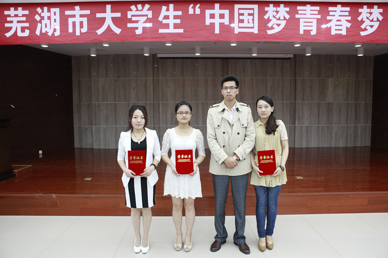 在6月8日结束的由共青团芜湖市委员会、芜湖日报报业集团主办,电信芜湖分公司协办的“电信杯”芜湖市大学生“中国梦·青春梦”演讲比赛中,由我院“中国梦·机电情”普通话演讲比赛中脱颖而出的张慧、杨小骊、夏梦莲三名同学获得优秀奖,为我院争得了荣誉。
