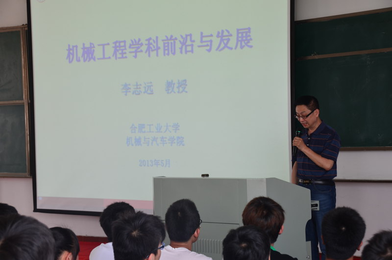 6月5日下午,合肥工业大学博士生导师、全国高校机械工程测试技术研究会副理事长李志远教授应邀来我校西二503教室,作题为“机械工程学科与发展”的讲座。讲座由基础教学部副主任郭大伟教授主持,学院教务处工作人员、青年教师与学院机械系学生共计300余人参加了本次讲座。
