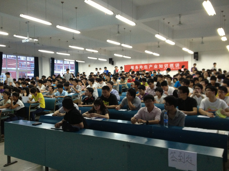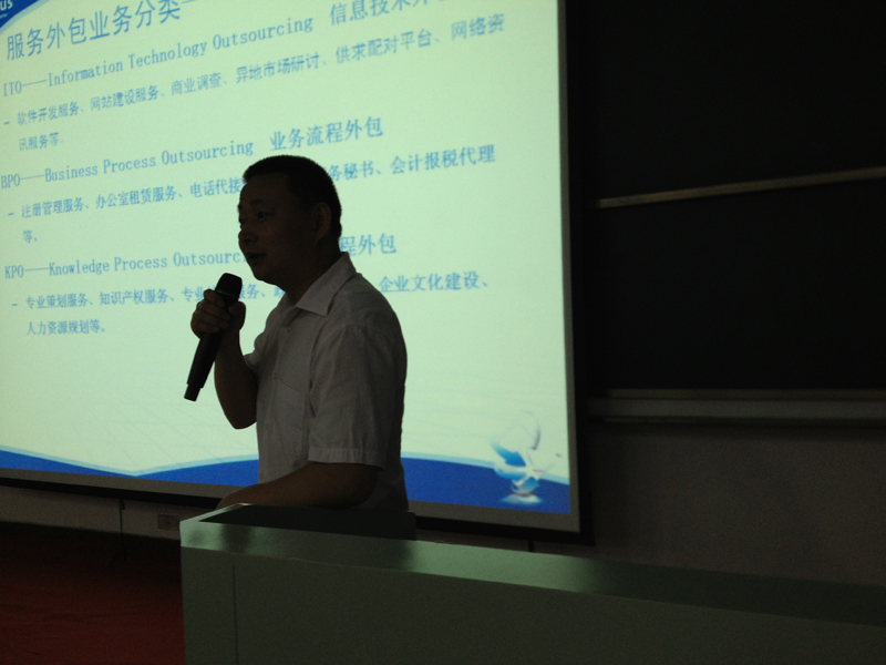 刘会勇总监详细介绍了服务外包产业的发展历程,并对我国现在服务外包产业现状与格局进行了详尽地介绍和分析。他要求同学们要好好学习专业知识,拥有较好的外语水平,做好自己的人生规划,为做一名优秀的IT产业人员而努力,同时,他的讲解,也为同学们日后就业择业指出了方向。