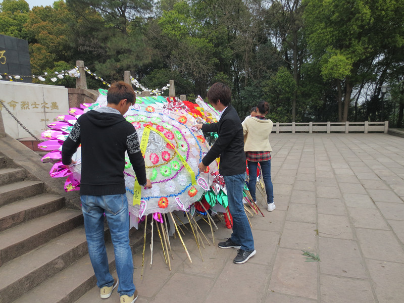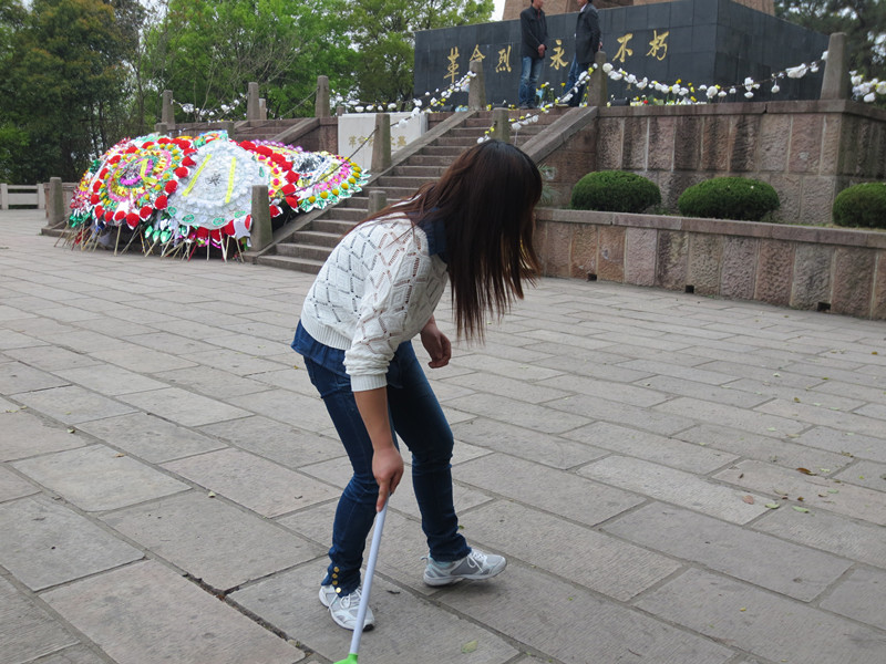 到达烈士陵园后,同学们在老师的带领下对烈士陵园进行了清扫。随后在肃穆庄重的哀乐声中,全体人员向革命先烈鞠躬致哀,敬献花圈,表达对烈士们的深深敬意和深切缅怀。