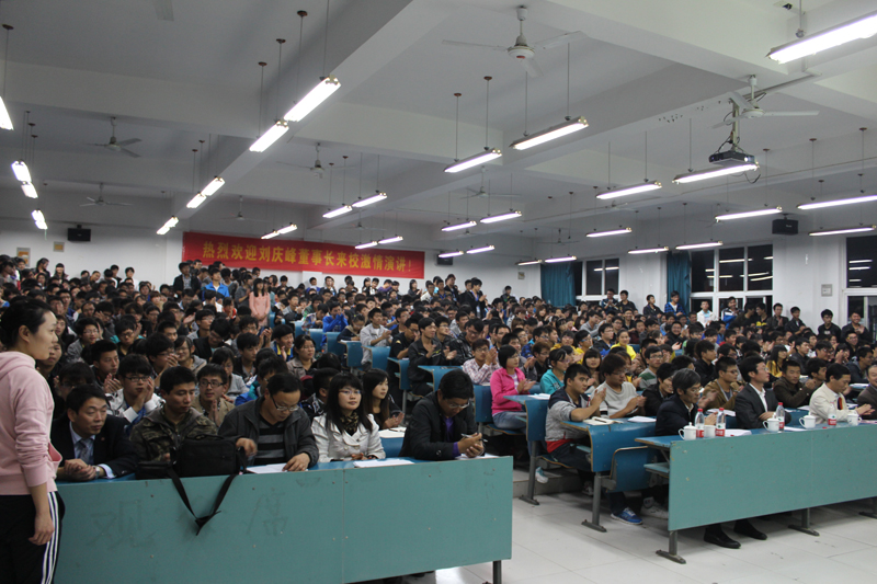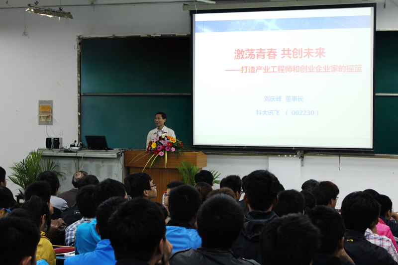 在同学们热烈的掌声中,刘庆峰董事长为我院师生作了一场精彩的报告。在近两个小时的报告中,他从创业经历、讯飞发展、人生理想、就业前景、机电学院办学特色以及社会价值等方面作了激情洋溢的阐述。