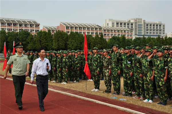 在雄壮的军乐声中,院长李震在武警芜湖支队领导陪同下检阅了军训方阵。他向同学们致以亲切的问候,同学们也以洪亮的声音、整齐的军姿向院长致敬。