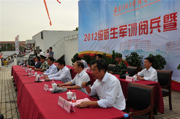 金秋九月,丹桂飘香。9月28日下午,安徽工程大学机电学院2012级新生军训阅兵暨开学典礼在文津校区田径操场隆重举行,在雄壮的国歌声中拉开序幕。院长李震,副院长柴阜桐、胡守信、许晓菁、袁化伦,院长助理兼院办主任董飞,学院各系、处室负责人、2012级全体新生及新生辅导员参加了开学典礼。参加此次大会的还有:科大讯飞常务副总裁陈涛,武警芜湖支队政委陈敬峰。开学典礼由副院长柴阜桐主持。