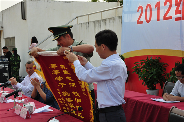 阅兵结束后,武警芜湖支队陈敬峰做军训总结,军训团政委、学院副院长许晓菁宣读军训先进集体、先进个人表彰决定。院长李震向军训承训部队武警芜湖支队赠送了锦旗。