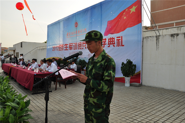 军训阅兵暨开学典礼上,教师代表陈永煌教授、2012级新生代表工商管理专业陈传江同学分别上台发言。