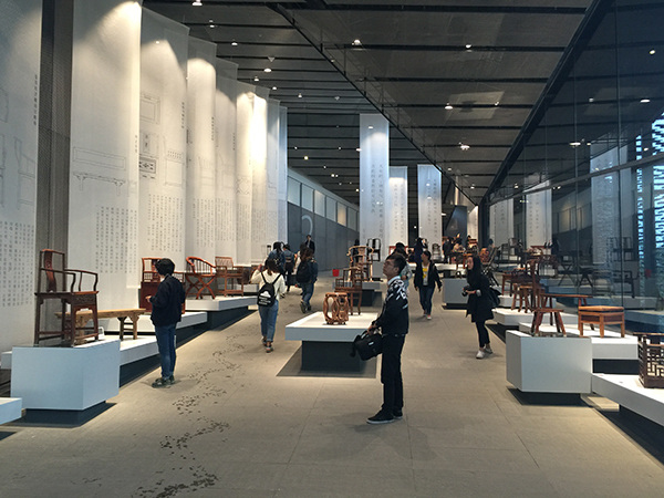 校内由日本建筑师隈研吾设计的民艺博物馆,开设“百椅百态”、 “日用即道”、“格物之知”、“光影世象”四大展览板块,以中国传统物质文化、设计思想为展示和研究对象,传播中国美学价值和文化精神。此次课外参观学习开拓了课堂教学方式,使学生感同身受,对日后设计创作理念能有更好的启发。(文/李奇辰 图/王世頲 校/ 叶克军 审/王淮梁)