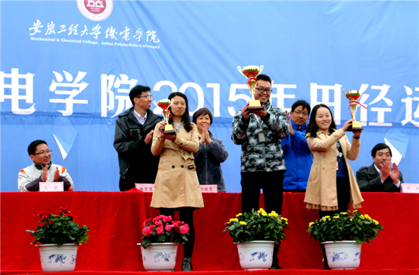 运动会总裁判长陈林首先宣布了获得本次“体育道德风尚奖”的团队名单:它们分别是艺术设计系、基础教学部和管理工程系。接着他宣布了团体总成绩、男子代表队和女子代表队获得前六名的名单。其中团体总成绩前三名分别由机械工程系、计算机与软件工程系和信息工程系获得。在欢快激越的“运动员进行曲”声中,各专业运动队代表上台领奖并合影留念。