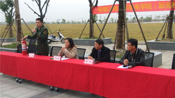 为有效增强师生的防火意识和应急逃生能力,普及学生消防常识,我院于11月9日在新芜校区A1教学楼组织举行第二十五个全国消防日系列活动之消防救援疏散演习。我院副院长毛玉敏、后勤保卫处副处长张祥,芜湖县公安消防大队指导员朱磊出席本次演习,后勤保卫处各科室人员、新芜校区全体辅导员、机械工程系、信息工程系学生代表、食堂、校内商业网点、昭阳物业员工代表约400余人参加本次演习。