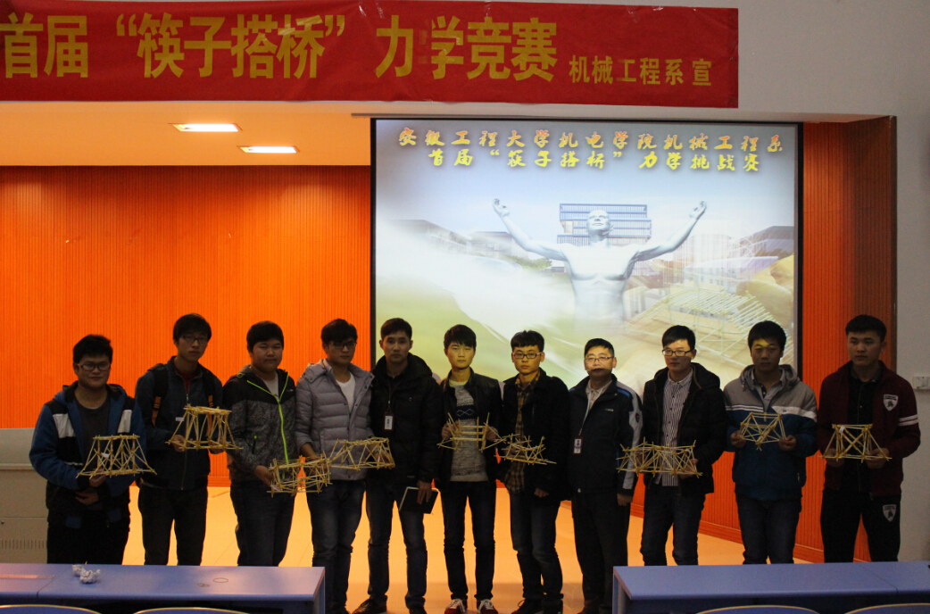 本网讯 11月25日晚7时,机械工程系在新芜校区举办“筷子搭桥”力学挑战赛。机械工程系教师孙瑞麟 、宋海洋受邀担任本次比赛的评委及指导老师。