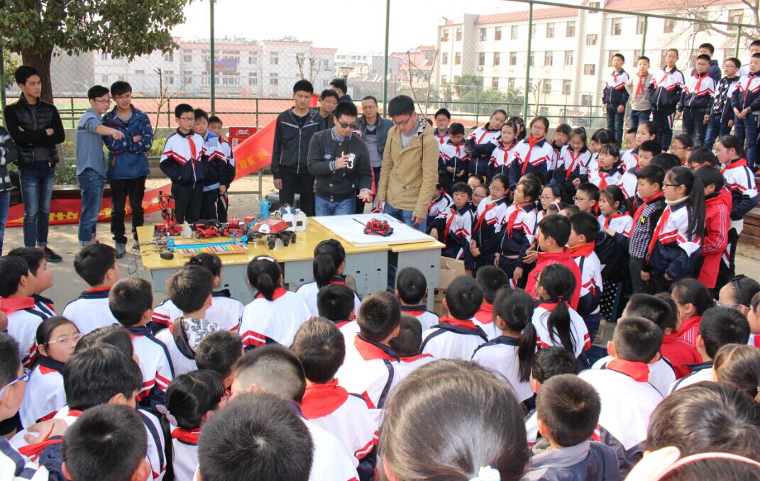 本网讯 3月16日下午两时,机械工程系学生会“学雷锋志愿者”徐中好、陈琦、苗大壮、孙汉辰等前往芜湖县实验学校,开展以“弘扬雷锋精神,机器人进小学”为主题的科普知识宣传活动。他们将自己精心制作的机器人再次带进了芜湖县实验学校的校园,让正处于学习黄金期的青少年同学们感受到了科技的魅力,零距离接触了科技带来的的神奇之处。