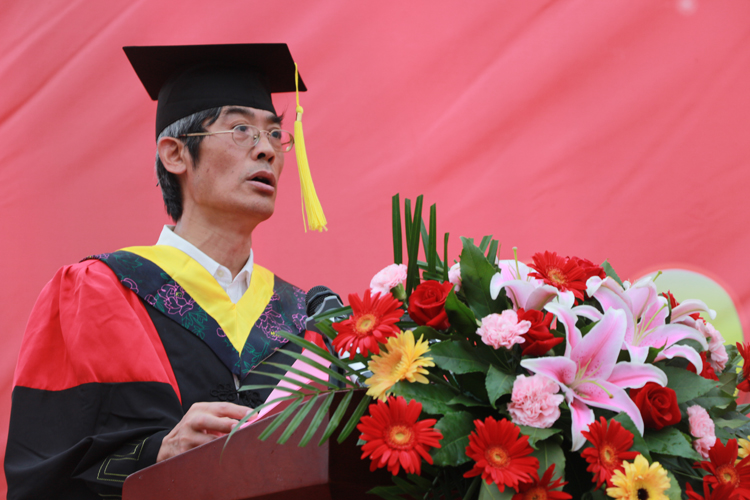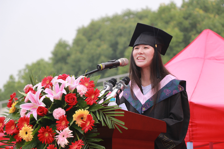 毕业生代表王露露、家长代表吴世经和教师代表姜宪明教授上台发言。他(她)们中有的讲述了自己四年大学生活的深切感悟和对老师的由衷感恩;有的对学校四年培养致以深切的感谢并向毕业生们致以热烈的祝福;有的对毕业生殷殷嘱托,并对他们走上工作岗位后的前程予以深切的期盼。
