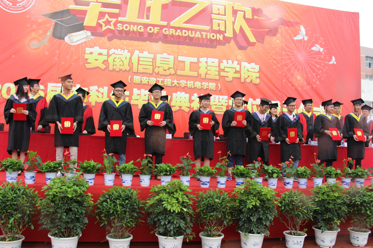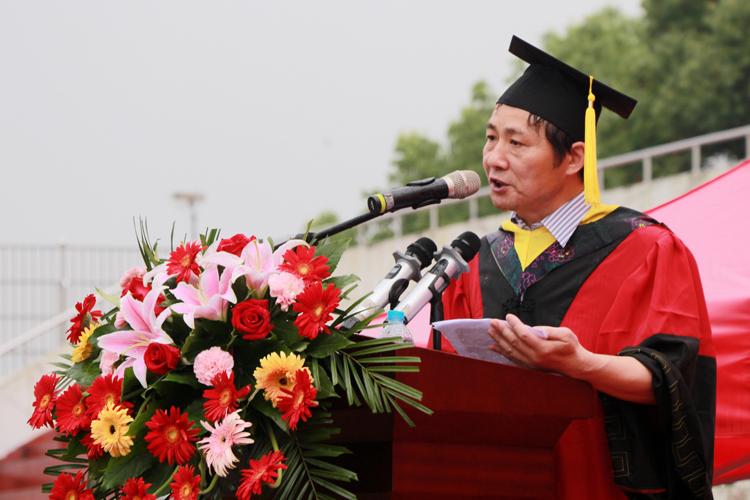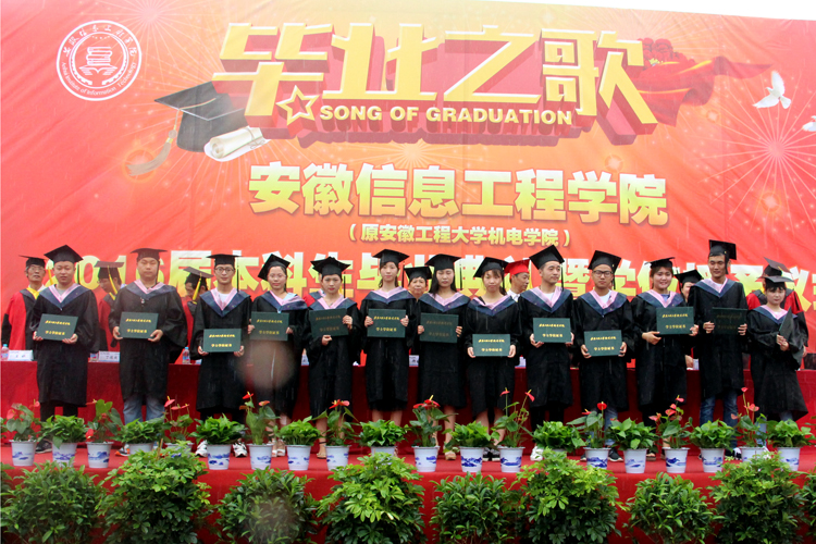 他说,六月是离别的季节,更是收获的季节。今天,你们顺利完成了大学四年的学习,即将踏上人生新的征程。作为文津校区迎来的首届学生,也是合作办学以来的首届毕业生,你们亲身经历了学院艰苦的“拓荒”阶段,积极参与了学院一系列教育教学创新改革举措。面对困难与挑战,你们学会了从容和拼搏。四年来,在你们参与和见证下,学院在提升应用型人才培养质量、夯实办学基础、提升学生就业竞争力等方面取得了重大突破。办学特色日益凸显,办学质量逐步提升。6月10日,全体师生共同见证了学院正式更名为安徽信息工程学院并揭牌。这是四年来全体师生共同努力的成果,是学院发展史上的一个重要里程碑。在此,我要向各位同学表示衷心的感谢!