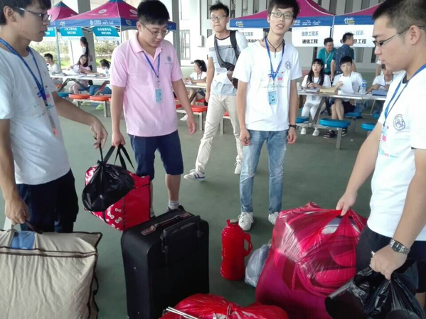 9月5日上午8点开始,新生入学报到工作正式开始,不少学生家长前来报名登记。虽然人比较多,但工作人员安排细致,报到点前秩序井然。登记、交档案、发校园卡,安排志愿者们带领新生到卧具包发放点处办理相关手续,虽然工作很紧张,但是每项程序都有条不紊的进行。工作人员始终在连轴转,即使他们的嗓子都有些沙哑了,却依然耐心的在向络绎不绝前来报到新生说明流程,办理登记,安排接送人员,并在带领新生前往宿舍的路上为他们介绍学校的相关情况,解释住宿注意事项。