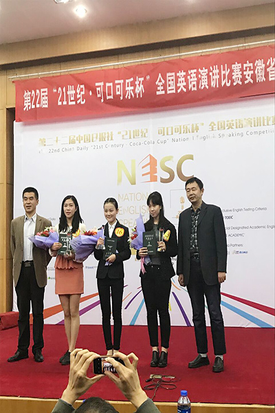 本网讯 第22届中国日报社“21世纪•可口可乐杯”全国英语演讲比赛安徽赛区总决赛于11月19日在合肥工业大学屯溪路校区学术会议中心落幕。我院基础教学部英语13级吴航同学不畏强手,力压群雄,以出色的表现勇夺冠军,创造了我院英语赛事的最好成绩,她将代表安徽省参加明年三月的全国总决赛。而我校另一位来自电信专业的许秀梅同学也获得了此次比赛的三等奖。