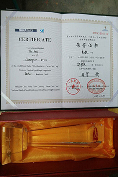 中国日报社“21世纪杯”全国英语演讲比赛是由中国日报社主办、二十一世纪英语教育传媒承办的国内规格最高,受众面最广的英语演讲赛事,旨在推动大学外语教育质量,提高大学生的英语学习兴趣。自1996年创办以来,就一直被指定为每年在英国伦敦举办的国际英语演讲比赛的中国区唯一选拔赛,中央电视台知名主持人刘欣及外交部知名翻译张璐、孙宁、张京、王冠等均曾作为大赛获胜者参加国际比赛荣获大奖。21世纪杯演讲比赛已成为体现选手们英语水平的最佳舞台。