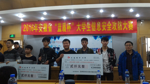 据悉,2016年安徽省“蓝盾杯”大学生信息安全攻防赛由安徽省教育厅主办,合肥工业大学、安徽省高等学校计算机教育研究会、合肥学院共同承办,蓝盾信息安全技术股份有限公司协办。本次赛事共吸引了来自安徽地区高校的40支队伍参加比赛,其宗旨是“搭建平台,引起兴趣,鼓励创新,促进发展”。