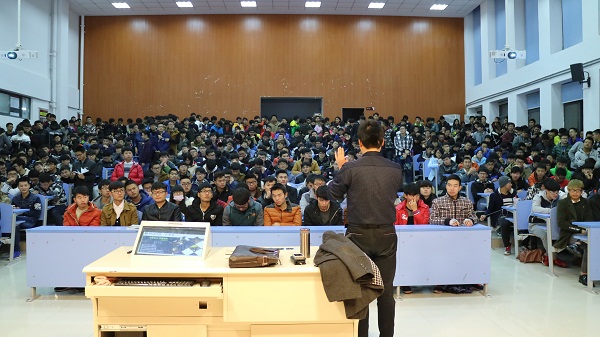 本网讯 11月25日晚19:00—21:00,我院大学生综合素质与能力培养中心在新芜校区A1W101举办了“赢在学习•胜在改变——体验师力量”专题讲座。由我院双师型教师、国家高级体验式培训师、国家体验式培训师专审员洪杰作主讲,学院部分老师以及500多名同学参加了此次讲座。