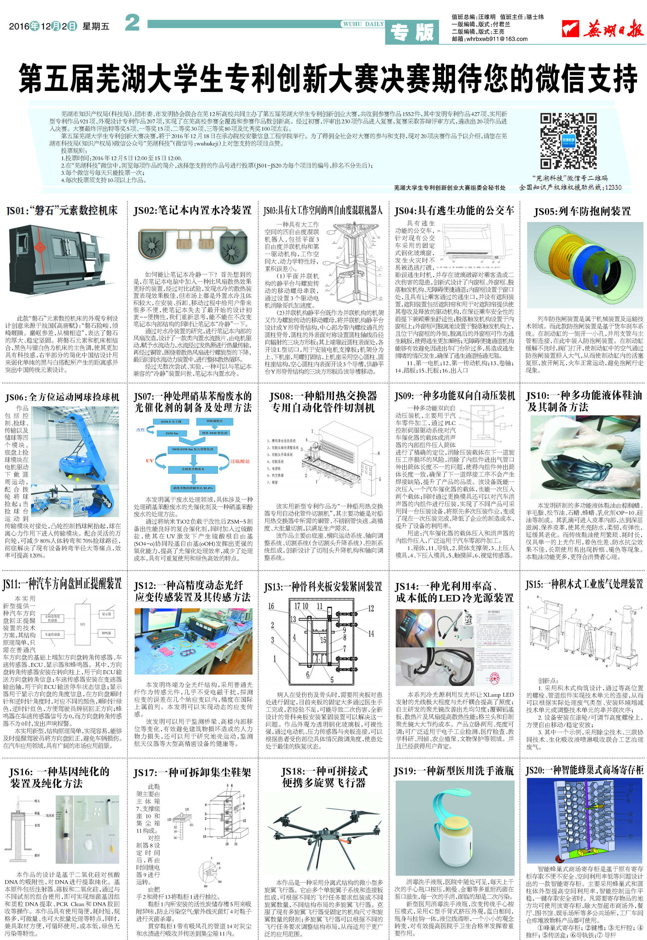 第五届芜湖大学生专利创新大赛决赛期待您的微信支持