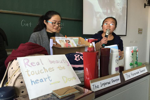 本网讯 本学期,为了巩固商务英语课程教学改革的成果,进一步提升英语专业学生的实践能力和就业竞争力,基础教学部于12月1日在A1N404教室面向14级英语专业全体学生成功开展了“模拟贸易展销会”活动。
