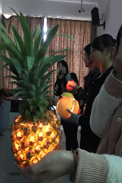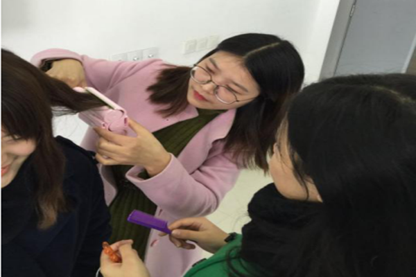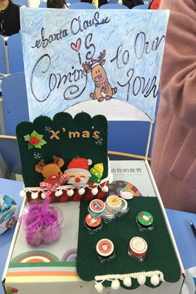 作为一门应用学科,商务英语既要让学生学习丰富的商务知识,还要学习商务方面的各种英语表达,提高商务英语的综合水平。为了贯彻学院培养适应社会需求的应用型人才理念,基础教学部在商务英语课堂教学上从学生实践应用能力的培养上进行了一定的改革和探索。本次“模拟贸易展销会”活动得到了学生的热烈响应。经过半个多月的筹备,三个班的同学为我们带来了一场精彩绝伦的展销会。英语1403班的同学通过自制的设备,展示了当下最热门的VR虚拟现实技术;英语1401班精美的手作水果灯和圣诞节主题护肤套装一登场就引发了强烈反响;英语1402班“发型沙龙”小组则以现场免费造型的方式提升了“客户”体验,获得了大量好评。