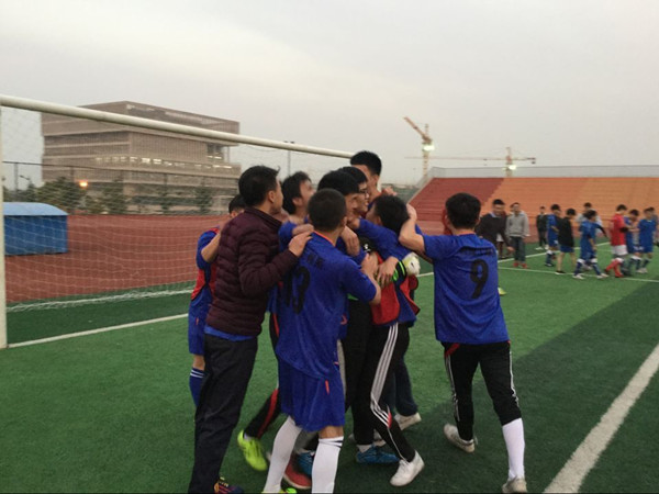 下半场易边再战,管理工程系更换队形,由单前锋,调整为三前锋,加强火力,意与对手一决雌雄。队长陈文俊的凌空一脚险些打破僵局,虽然这球没进,但管理工程系的气势已占据上风。比赛快结束前,前锋徐振雨又通过任意球机会形成单刀,对方后卫见势不妙只有拉人犯规,由于离禁区还有几步并未判罚点球。多一个人的管理系并未抓住机会,双方进入点球大战。点球大战中,守门员蔡伟刚发挥出色,成功扑出五次点球中三球,再加上管理工程系射手的稳定发挥,成功以2:1赢下了决赛!