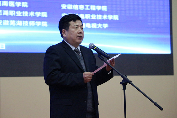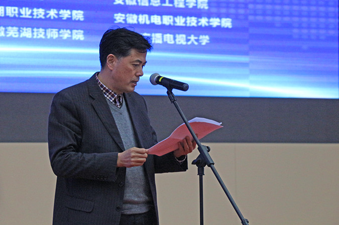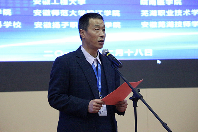 芜湖市人民政府副市长张志宏讲话。他高度肯定了本届大赛的成功举办,赞扬安信工在创新人才培养方面的做法和承办工作中作出的突出贡献,希望各高校能够继续做相关活动抓好人才培养,为城市建设、区域经济发展做出更多贡献。