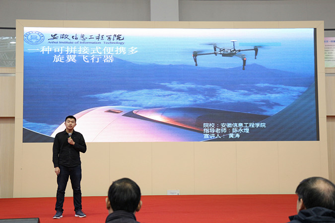 本网讯 12月18日,11名专家评委,40余名市知识产权局和兄弟院校领导,芜湖12所高校的2000多位观摩学生齐聚在安徽信息工程学院新芜校区体育馆,共同见证了我院承办的第五届芜湖大学生专利创新创业大赛决赛顺利举行。我院刘兵团队的“一种智能蜂巢式商场寄存柜”等5项作品在决赛中脱颖而出,获得特等奖。
