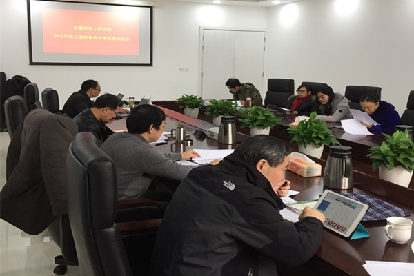 本网讯 12月22日上午,学院在新芜校区图书馆八楼1号会议室召开了校级核心课程建设项目检查验收评审会,并成立了9人专家组,对2016年初立项的项目进行检查验收。会议由副院长陈跃东主持。