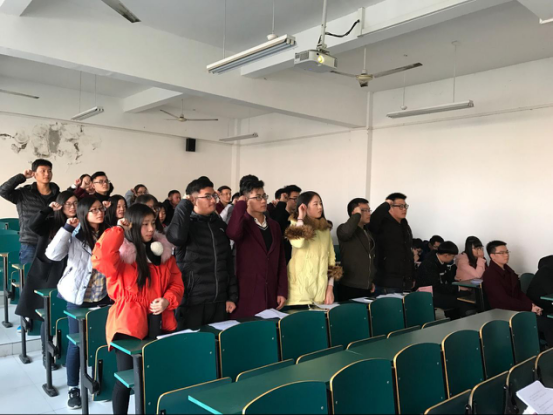 随后,28名同志在许瑞瑞老师的带领下进行宣誓,他们高亢激昂,声音久久回荡在教室里,真正展现出了对党的崇高敬意。
