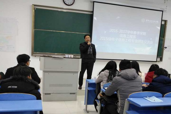 本网讯 2017年2月22、23日,信息工程系在新芜校区召开四场新学期各专业师生交流会。信息工程系自动化、电气工程及其自动化、电子信息工程、通信工程四个教学研究室教师全体出席,2015级各专业学生全体参加。