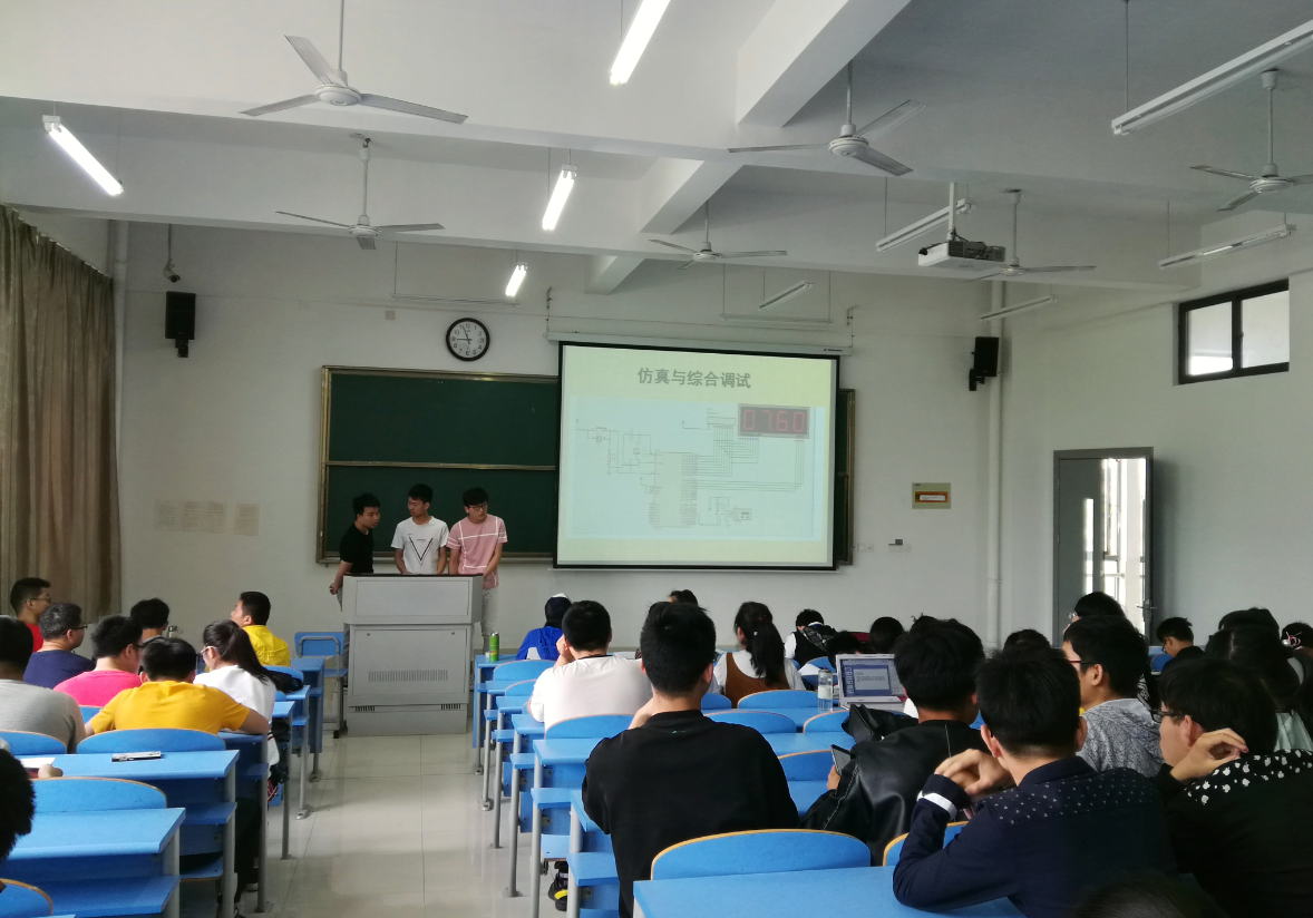 答辩过程中,学生结合项目课题的整体设计思路、系统软硬件搭建的具体方案、仿真效果的界面展示等方面进行PPT汇报,通过实物的现场调试,演示运行的实际效果,展示项目最终成果。指导老师根据课题展开针对性的提问,答辩气氛紧张而活跃。