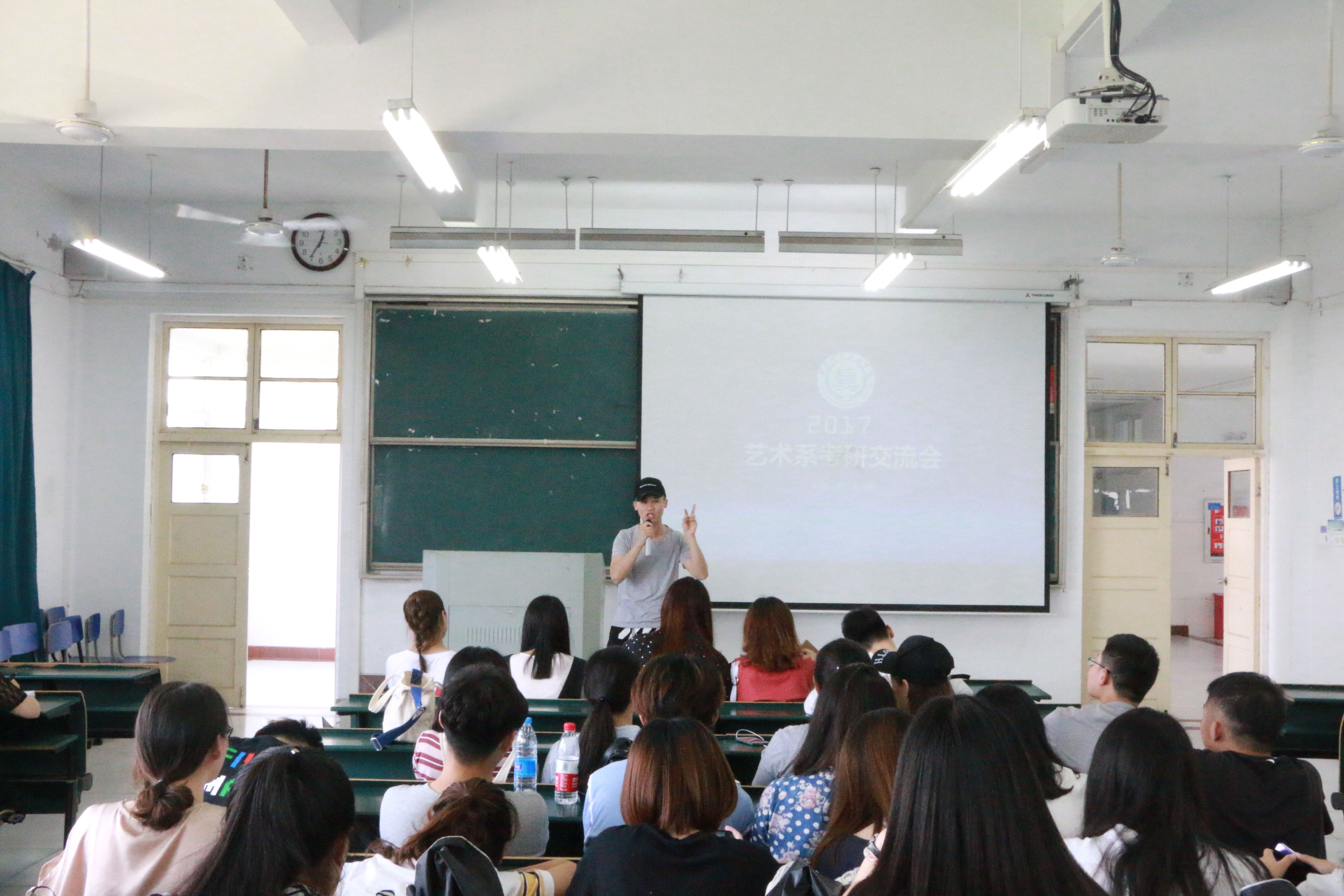 本网讯 为了进一步提高我系学生的考研热情,明确考研目标,掌握相关考研技巧,了解更多考研信息,艺术设计系于5月26日中午在西三402举行2018届考研交流会。本次交流会邀请到艺术设计系13级考研成功的学长学姐们讲解考研方法及经验,由李子豪担任主持,18届备战考研全体学生参加。