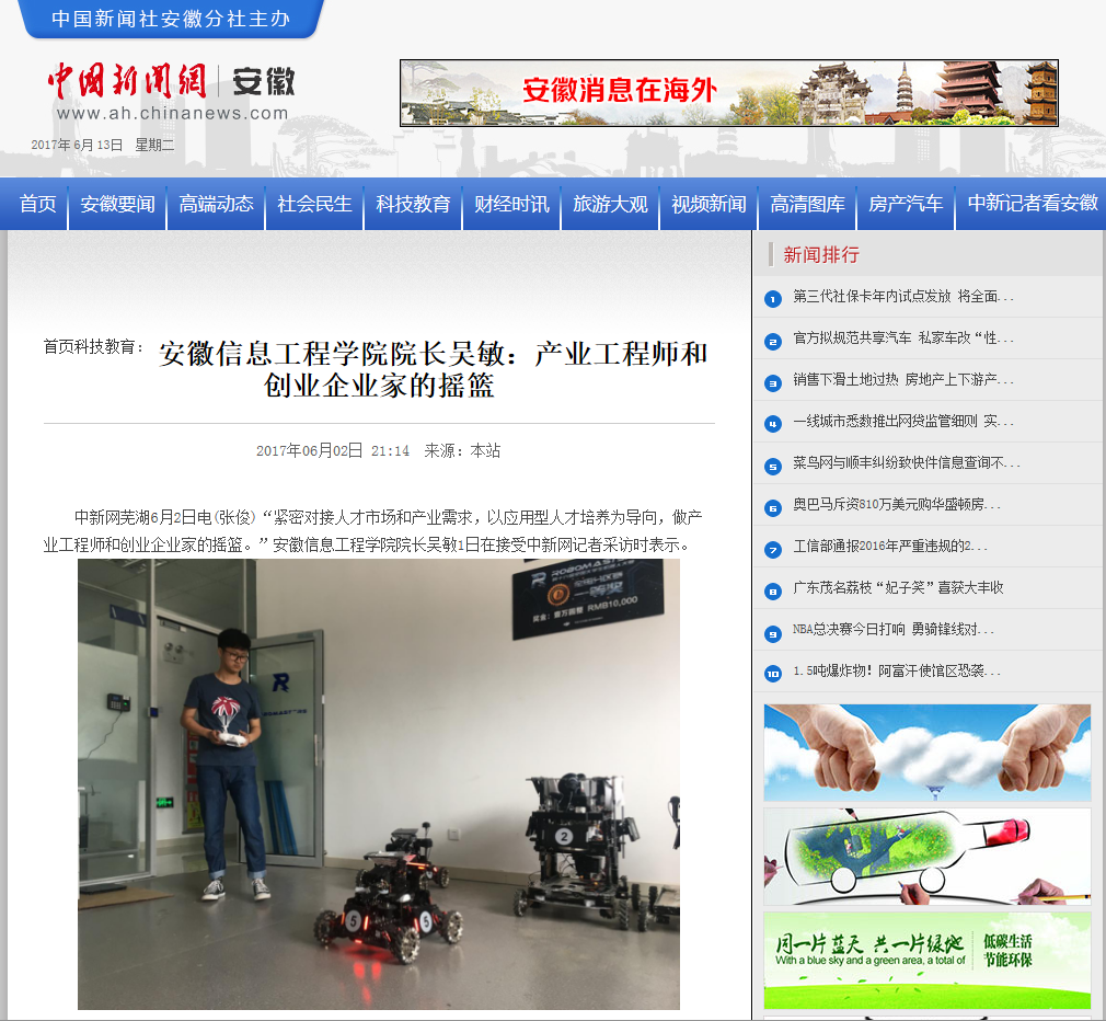 中国新闻网 2017年6月2日 安徽信息工程学院院长吴敏:产业工程师和创业企业家的摇篮