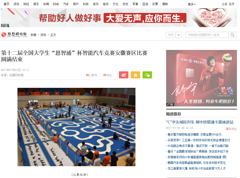凤凰安徽 2017年7月21日 第十二届全国大学生“恩智浦”杯智能汽车竞赛安徽赛区比赛圆满结束
