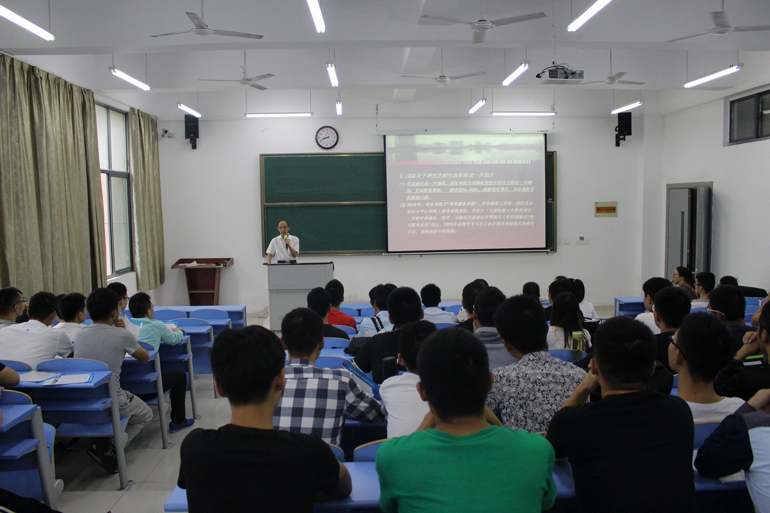 本网讯 考研的冲锋号已经吹响,9月19日,安徽工程大学机械与汽车工程学院来我院机械工程系举行2018年研究生招生咨询报告会。安徽工程大学机械与汽车工程学院副院长高洪、党委书记伊长文、教授刘琪,我院机械工程系主任柴阜桐、辅导员韩海东、孙奇慧以及系部近百名考研学生参加了此次宣讲会。