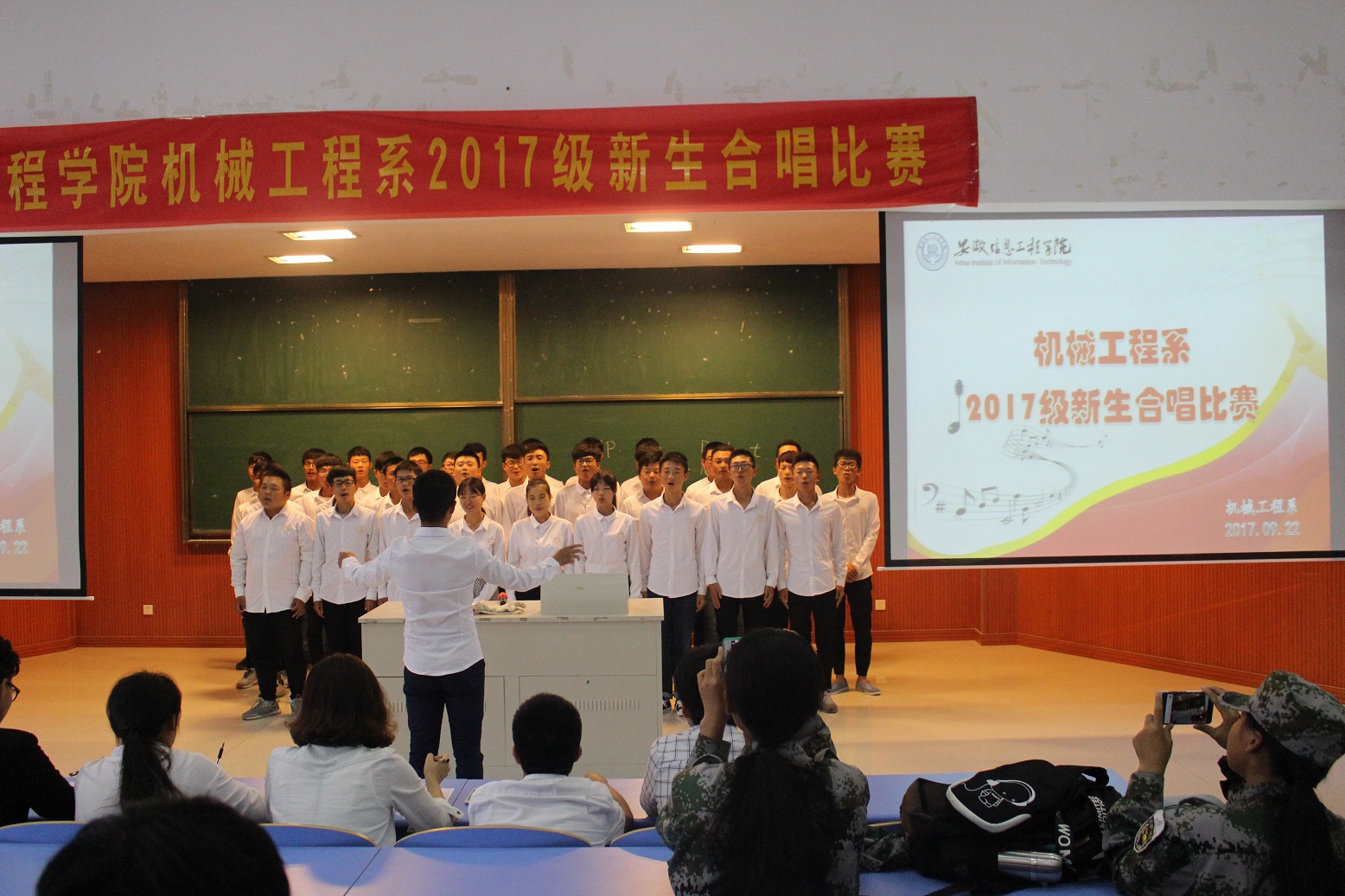 本次大合唱是对大学新生进行爱国主义、集体主义和民族精神的生动教育。机械工程系2017级的12个班级全部参与,他们利用课余时间精心准备,积极排练。本次比赛每个班级有五首参赛曲目可选,大多数班级选择了慷慨激昂的《光荣与梦想》,思想内涵丰富的《共筑中国梦》或是婉转悠扬、意味深长的《在灿烂阳光下》。比赛期间,台上的同学们热情洋溢,声音洪亮;指挥员手势准确,富有激情;台下观众掌声不断,一次次将比赛推向高潮,一阵阵嘹亮的歌声唤起了现场每一位同学的爱国情怀。经过认真的筛选和细致的比对,最终推选了车辆1702班和机械1702班代表我系参加学院比赛。至此,本次新生合唱比赛在一片热烈的掌声中落下了帷幕。