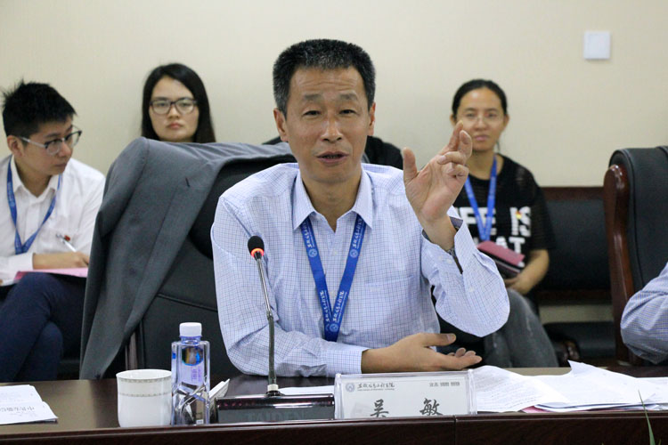 院长吴敏向检查组介绍了我院现阶段的基本情况。他说,学院在党的领导下,根据上级文件和指示,我们充分认识当今的在校生是未来社会主义的接班人,全院从上到下都高度重视党政建设,全体党员都以身作责,做到了以党建促进学院发展。